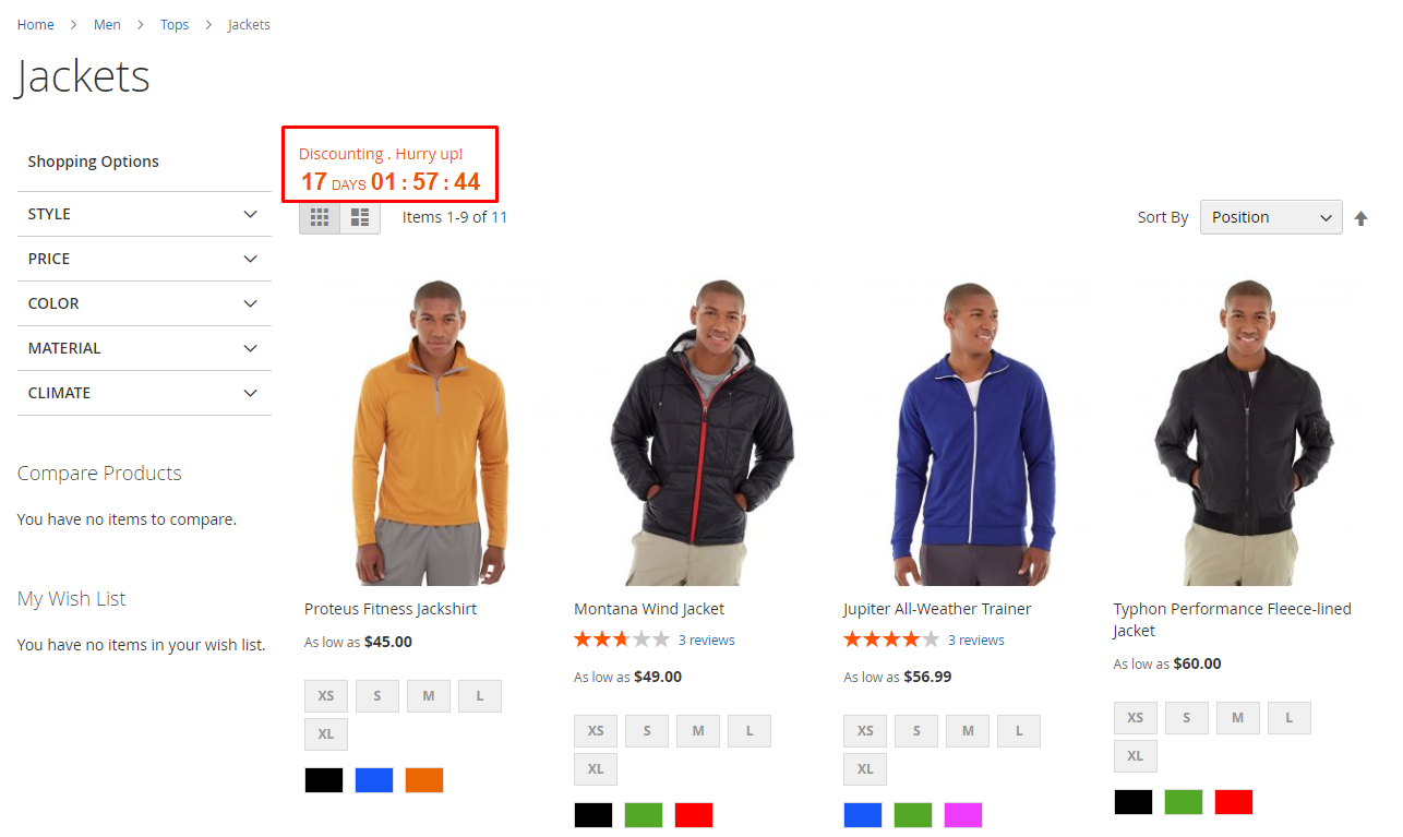 All Products with Special Price: Countdown Timer displayed on all products with special prices on the frontend.