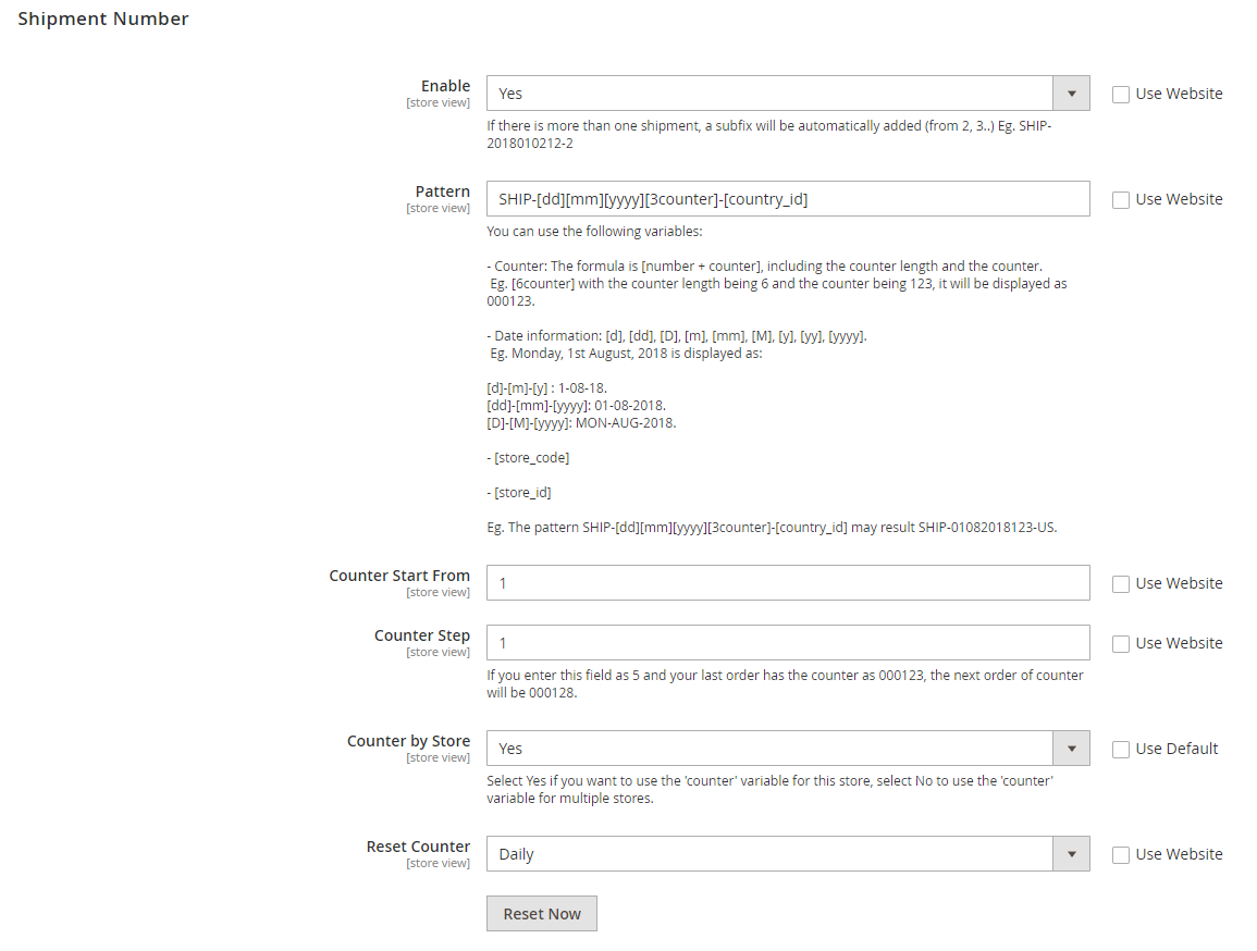 Counter Start Fromfield, after entering a new value and saving, admins need to click onReset Nowbutton so that the Shipment ID can get a newCounter Start Fromvalue.