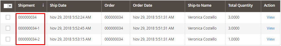 Apply for Shipment: Shipment ID will be configured according to Order ID. In the case of multiple shipments for an order, the second shipment's ID will be followed by a suffix. For example: Order's ID is Order #003, Shipment's ID is #003, the second Shipment's ID is #003-1.