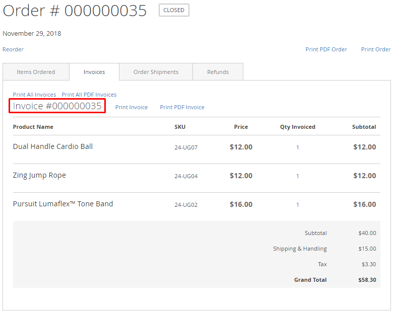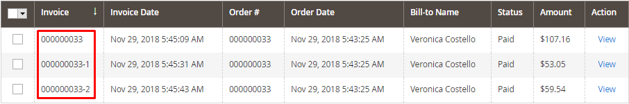 - In the case of multiple Invoices for an Order, the second Invoice ID onwards will be followed by a suffix. For example, the Order ID is Order #003, the Invoice ID is #003, the 2nd Invoice ID is #003-1.