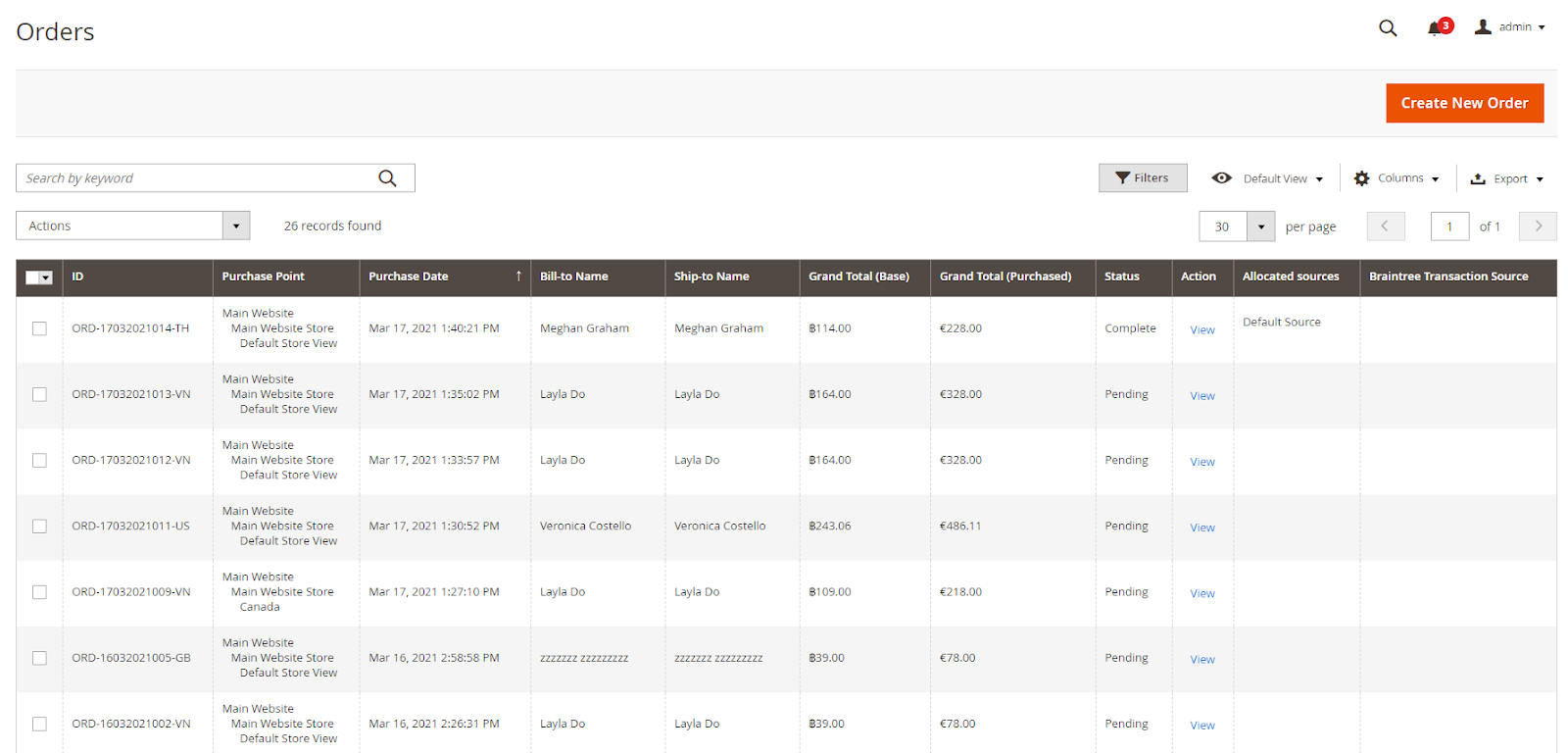 - If you choose No, the order ID of different stores will be merged and increased in succession based on the configuration of Main Website. For instance: Store A has 50 orders and the order ID is 50, store B don't have any order. When customers purchase the products in the store B, the order ID of store B is 51.