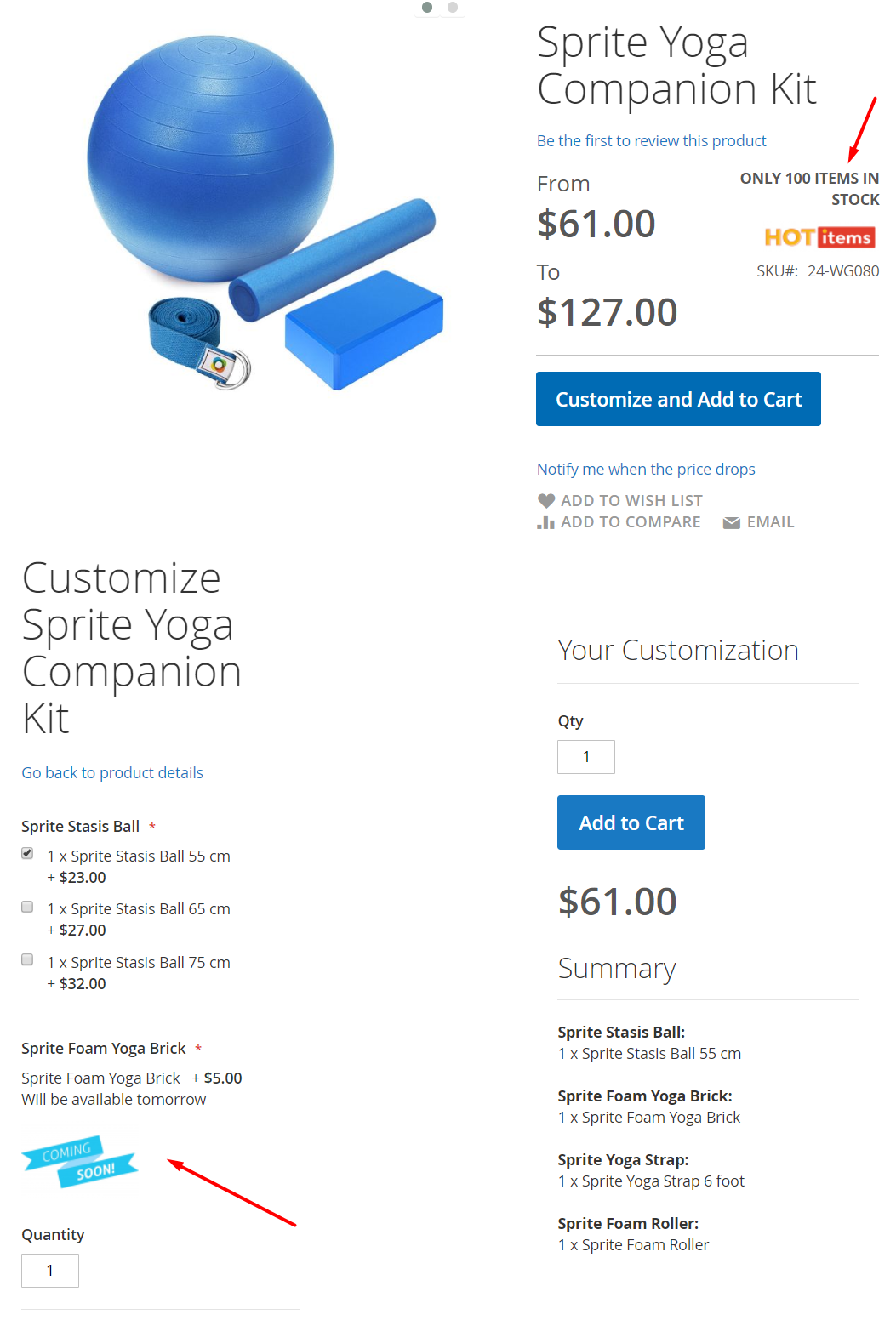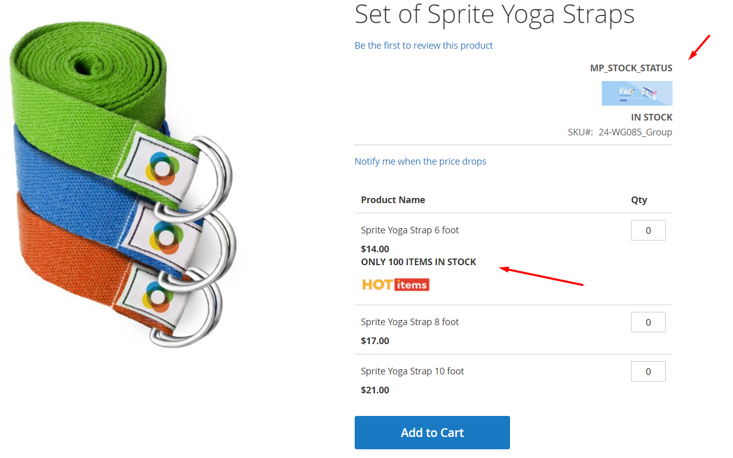 Yesto display the Custom Stock Status on options such as size, color, ... with the Configurable Product and the sub-products of Group Product, Bundle Product. - Selecting