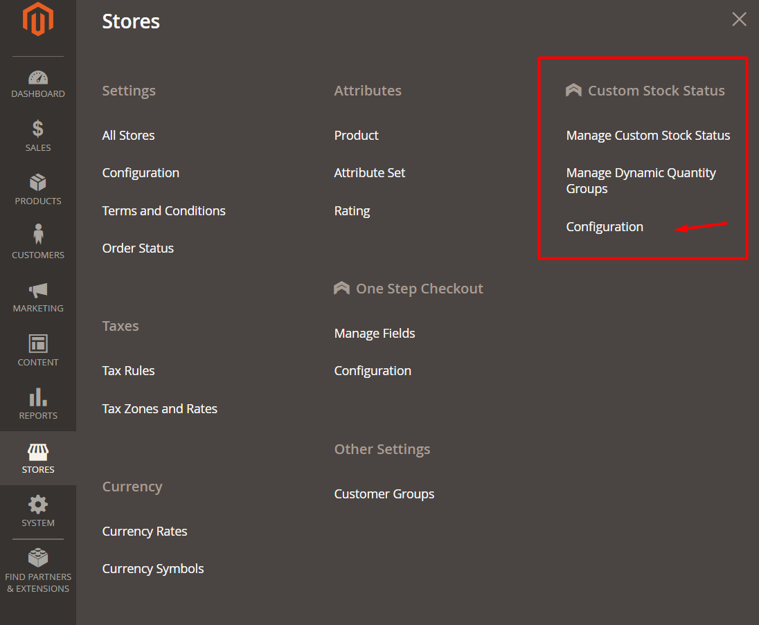 Login to the Admin Magento, choose Stores> Custom Stock Status> Configuration.