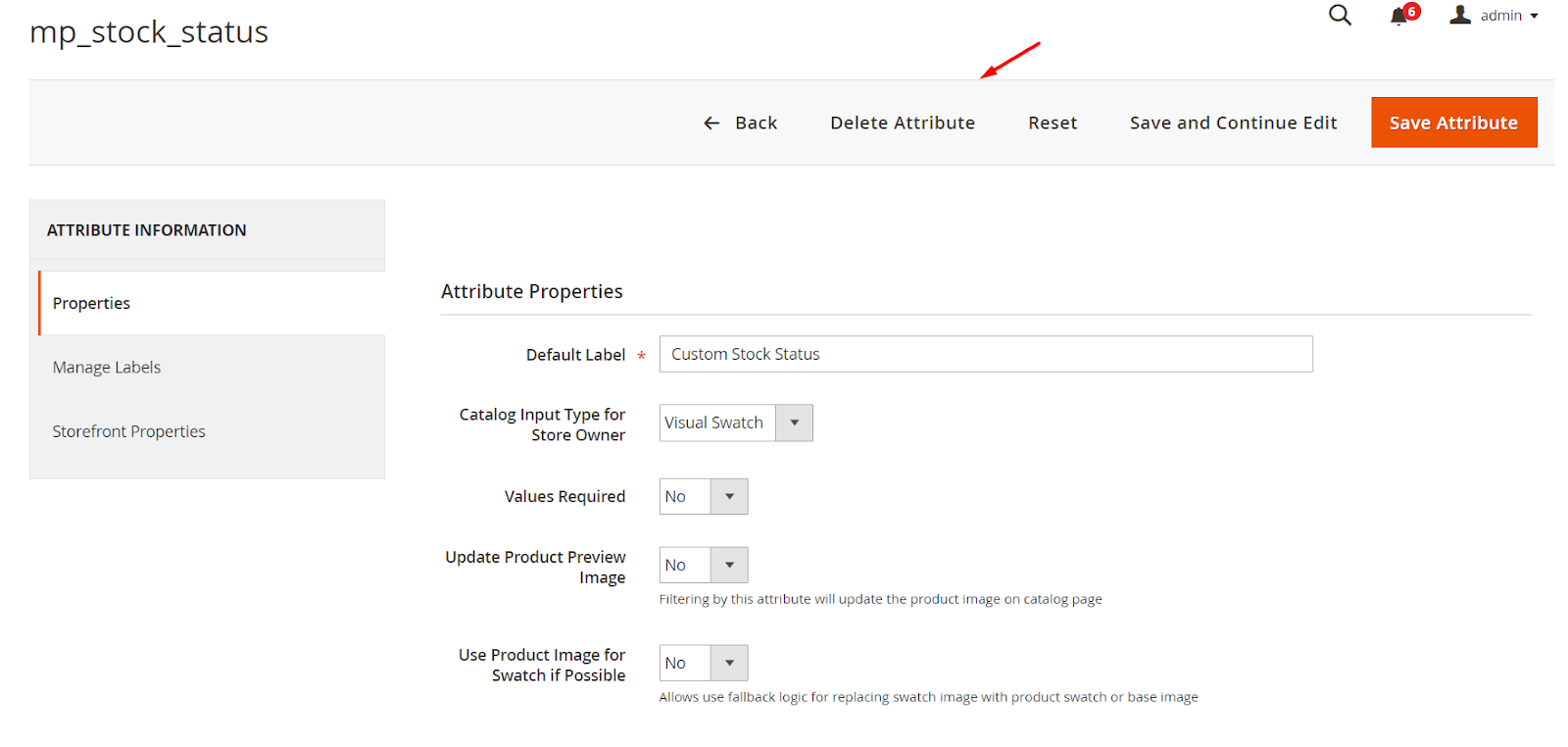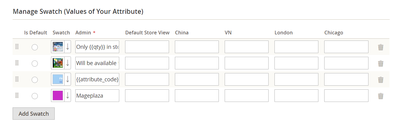 - Visual Swatch: Create an option of Custom Stock Status attributes in Manage Swatch (Values of Your Attribute) with label and image. You can upload image with .gif, .jpg, .png format. You can enter the replaced name of Custom Stock Status attributes for each store. Here, we support adding the variable in status to the Quantity label of the product. For example: Only {{qty}} in stock, Will be available tomorrow, {{attribute_code}}