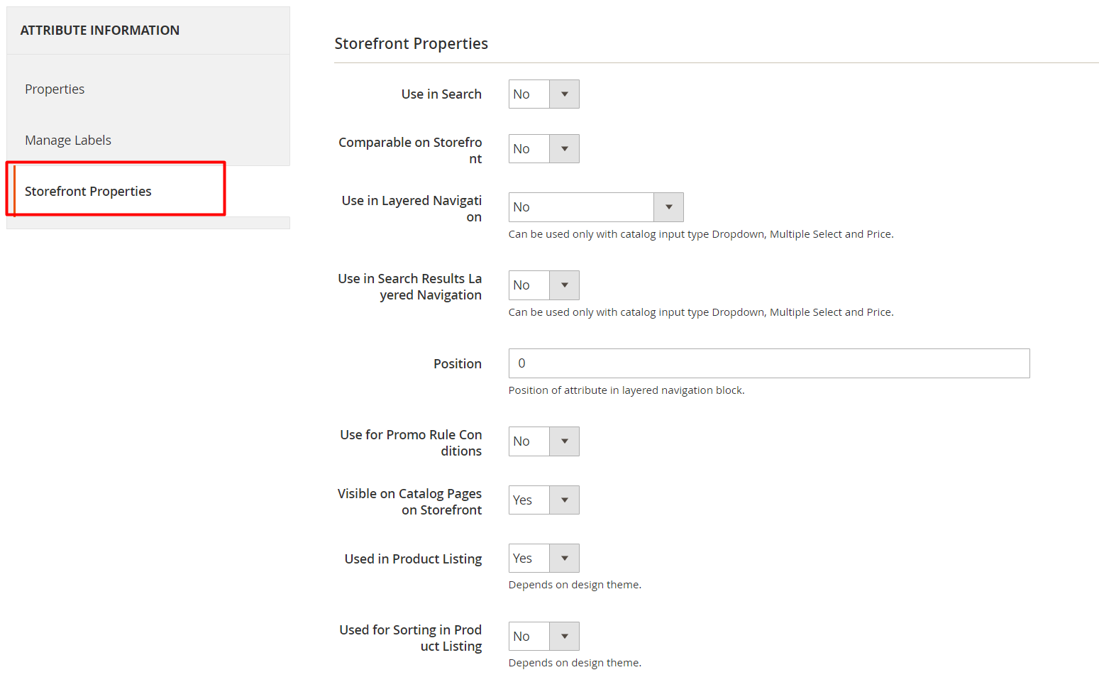 This section you can configure the display position of attributes. The Attribute Code and the Validation Input for Store Owner field is the default value.