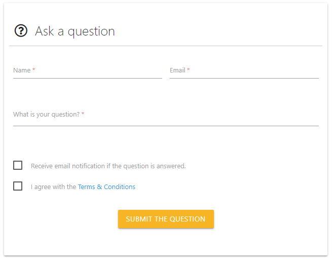 Submit Question FormYes (checkbox): Terms & Conditions will be displayed in the