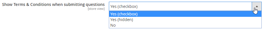 Submit Question Formunder checkbox form. Customers need to tick on the checkbox, after that the question can be submitted.Yes (hidden): Terms & Conditions will be shown in the