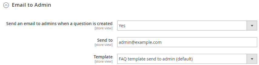 - Send an email to admins when a question is created: Choose Yes to email the notification for admin when a question is submitted by customers.