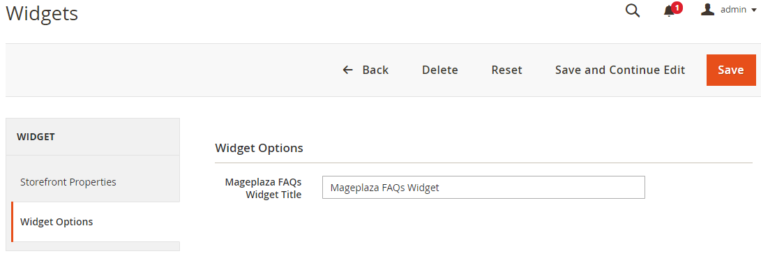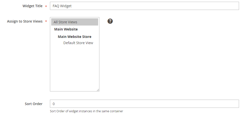 Step 3: Set the name for the widget (displayed in the backend) and choose Store View that you want to allow Widget to display