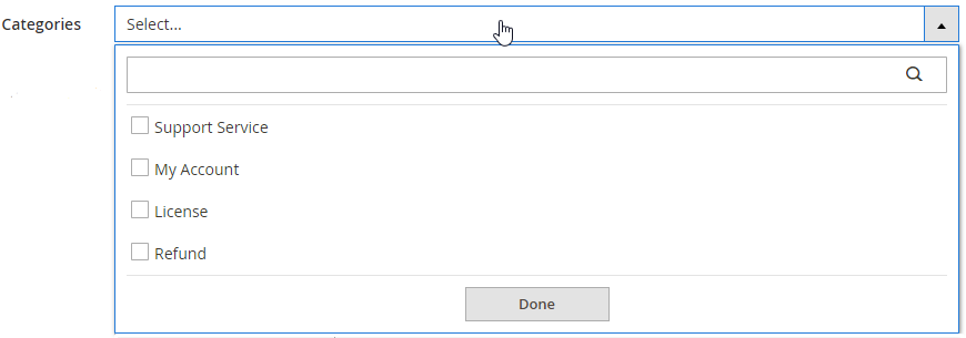 The same as FAQ Homepage, Category page is also displayed on the Search box and performs the function as on FAQ Homepage. When you find by the search box, all satisfied questions (in all categories) will be displayed. To return the current category, you only need to delete the condition that you have just searched.