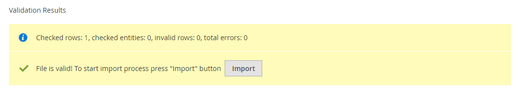 Check databutton. Data in the submitted CSV file will be checked and a message will inform whether it's valid or not. In case of being invalid, admins need to check the CSV file (especially required columns, columnβs name, etc.). With the valid case, the Import button will appear along with the message below