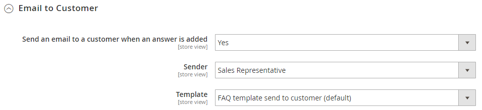 - Send an email to a customer when an answer is added: Choose Yes to email the notification to customers when the answers are public and sent to the registered customers to receive the email