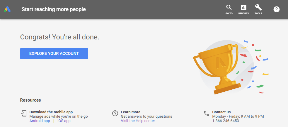 - Next, click on Explore your account to explore your account and get your Google Adwords ID.