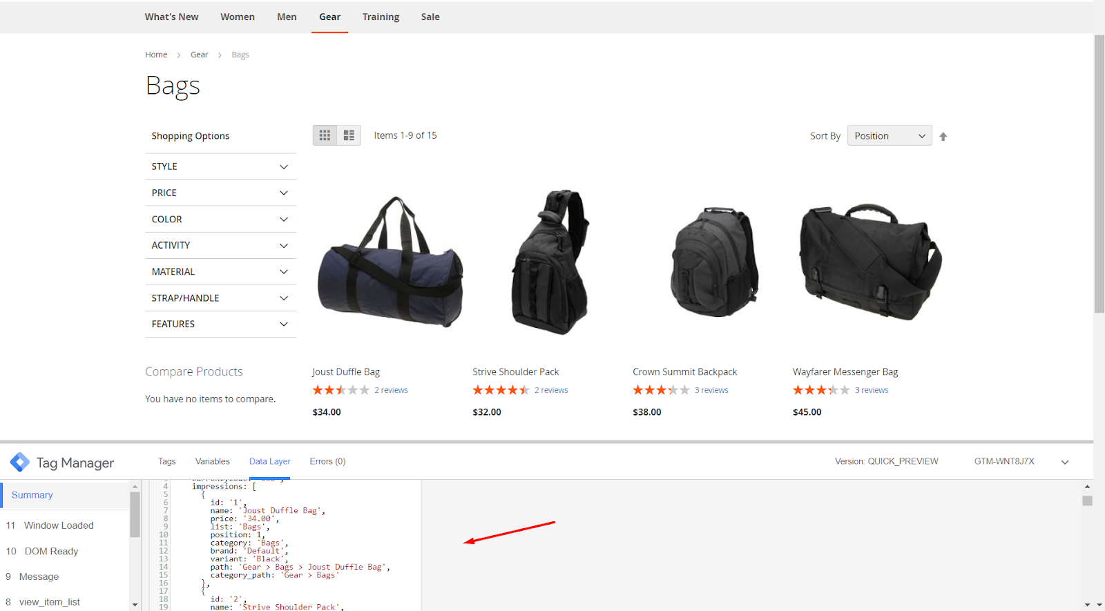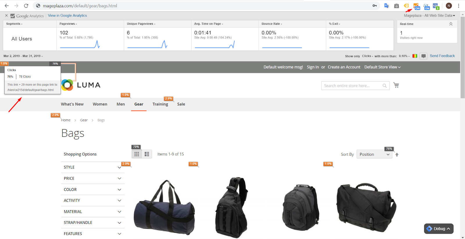 Gear> Bagsfolder, you still click on the view of products like Grid or List, then click on each part in the Bags folder, and when you click on the Grid or List, are different You should install and turn on Google Analytics Debugger and Page Analytics add to the browser you are using to support the reporting feature to see the number of clicks.