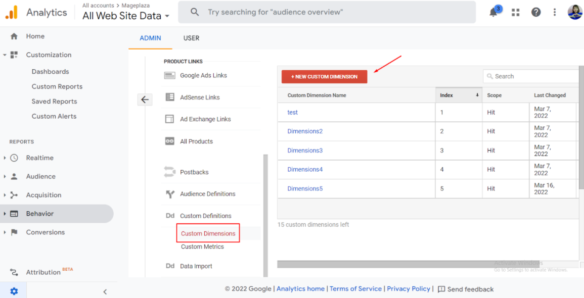 Admin > Custom Dimensions > Add New Customer Dimensionsor Dimensions, which are available in Google Analytics.