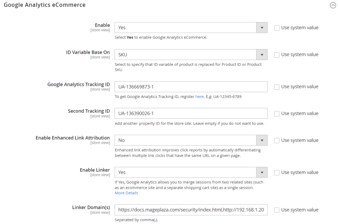 Enable Enhanced Link Attribution: Selecting Yes to enable allows customers to track each link and know the accuracy of the analytics report on the page by automatically distinguishing between multiple links to the same URL on one. The page from which the number of customers clicked on the page or product was calculated. For example, your link to the same page is the same, but the path is completely different on the same page. When you go to