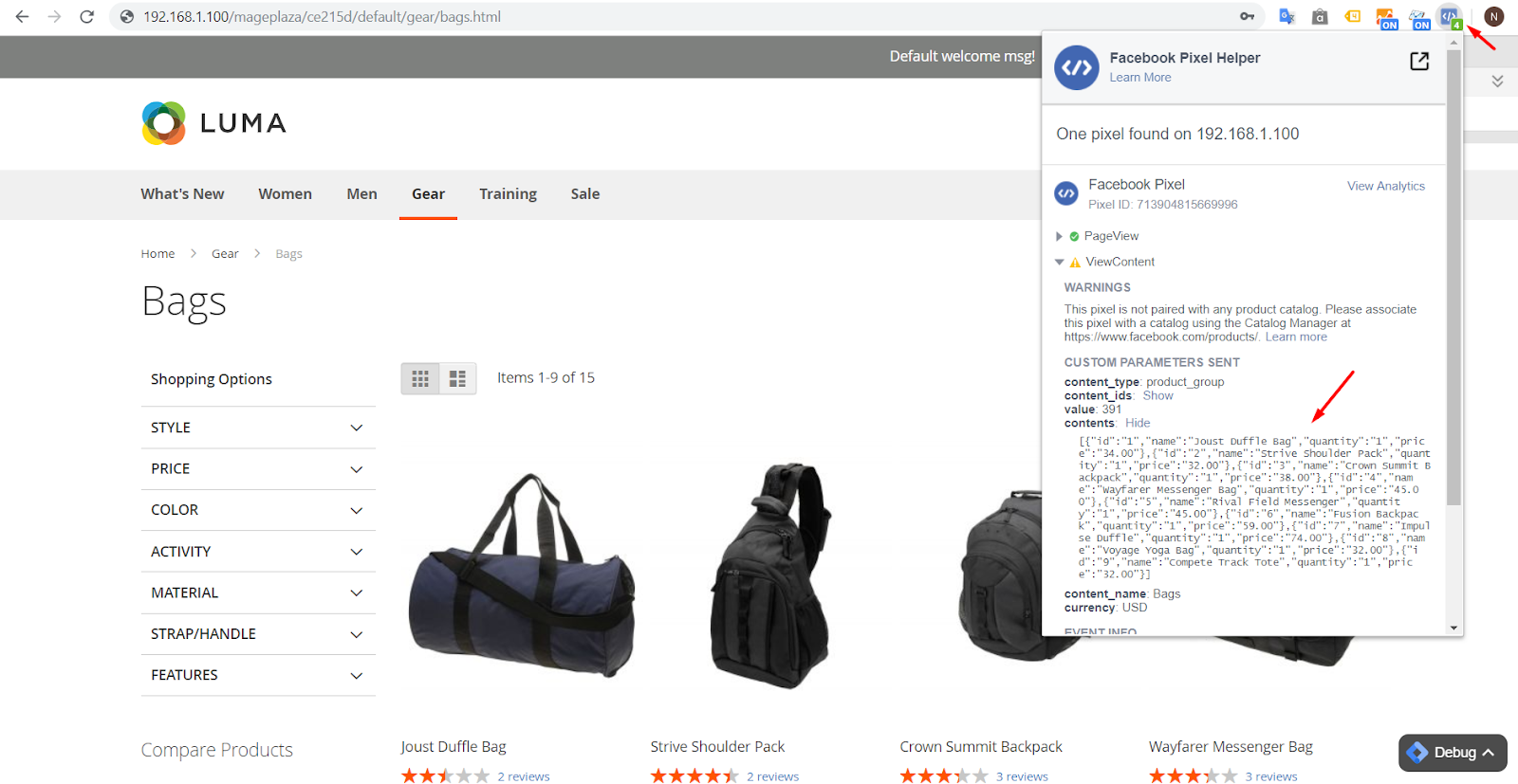 - Enter Facebook Pixel ID in the Facebook Pixel ID field to report and update website information such as in product page, category, checkout page, cart page, one step checkout page (compatible with Mageplaza One Step Checkout), remove from cart,...You should install the Facebook pixel helper in your browser to view information.