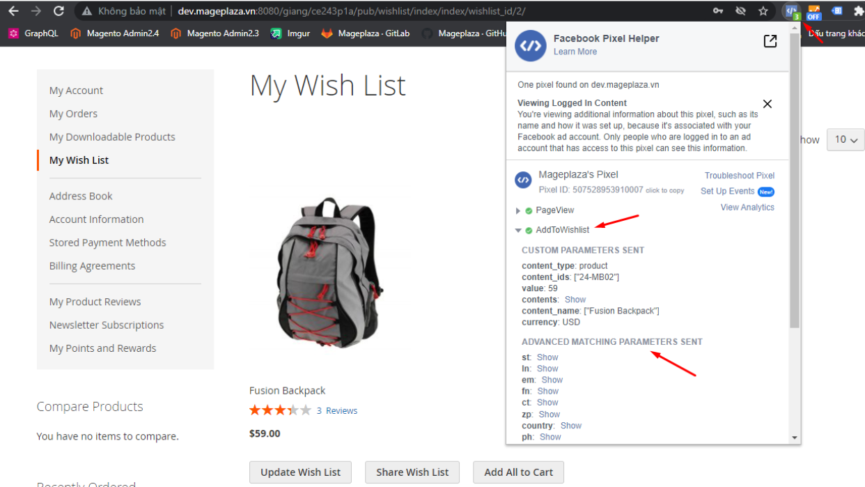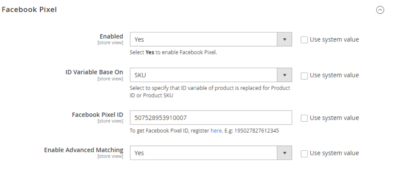 Enable Advanced Matching: Select Yes to add Tracking Add to Wishlist and Advanced Matching Parameters for Facebook Pixel.