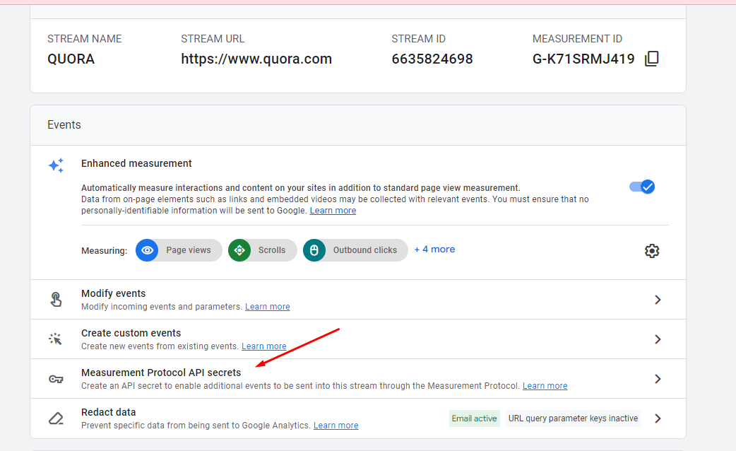 Custom Connection: Enter the corresponding Measurement ID and API Secrets values together to track events