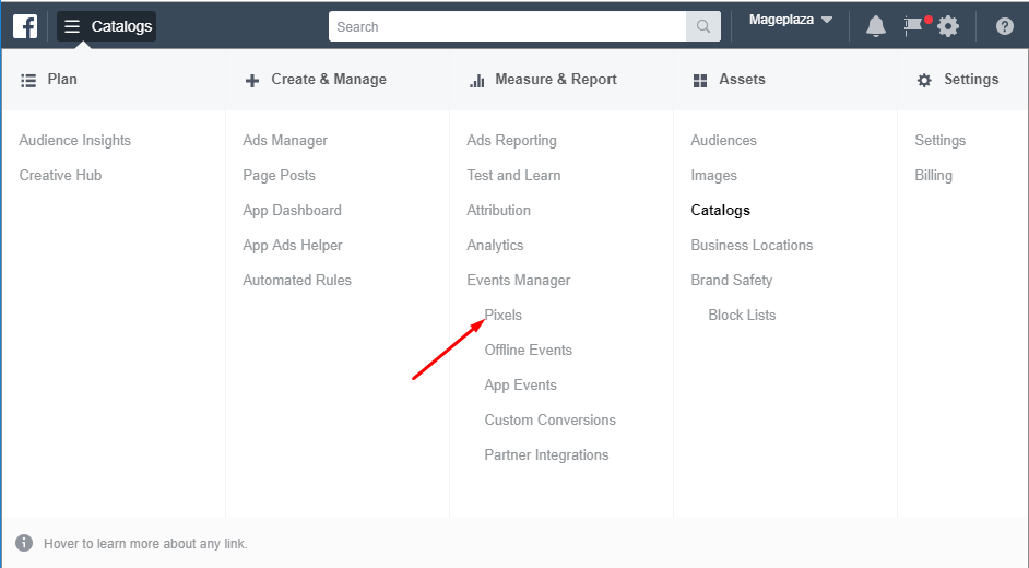 First, click on the Catalog section in the top left corner of the screen. In the Measure & Report column, go to the