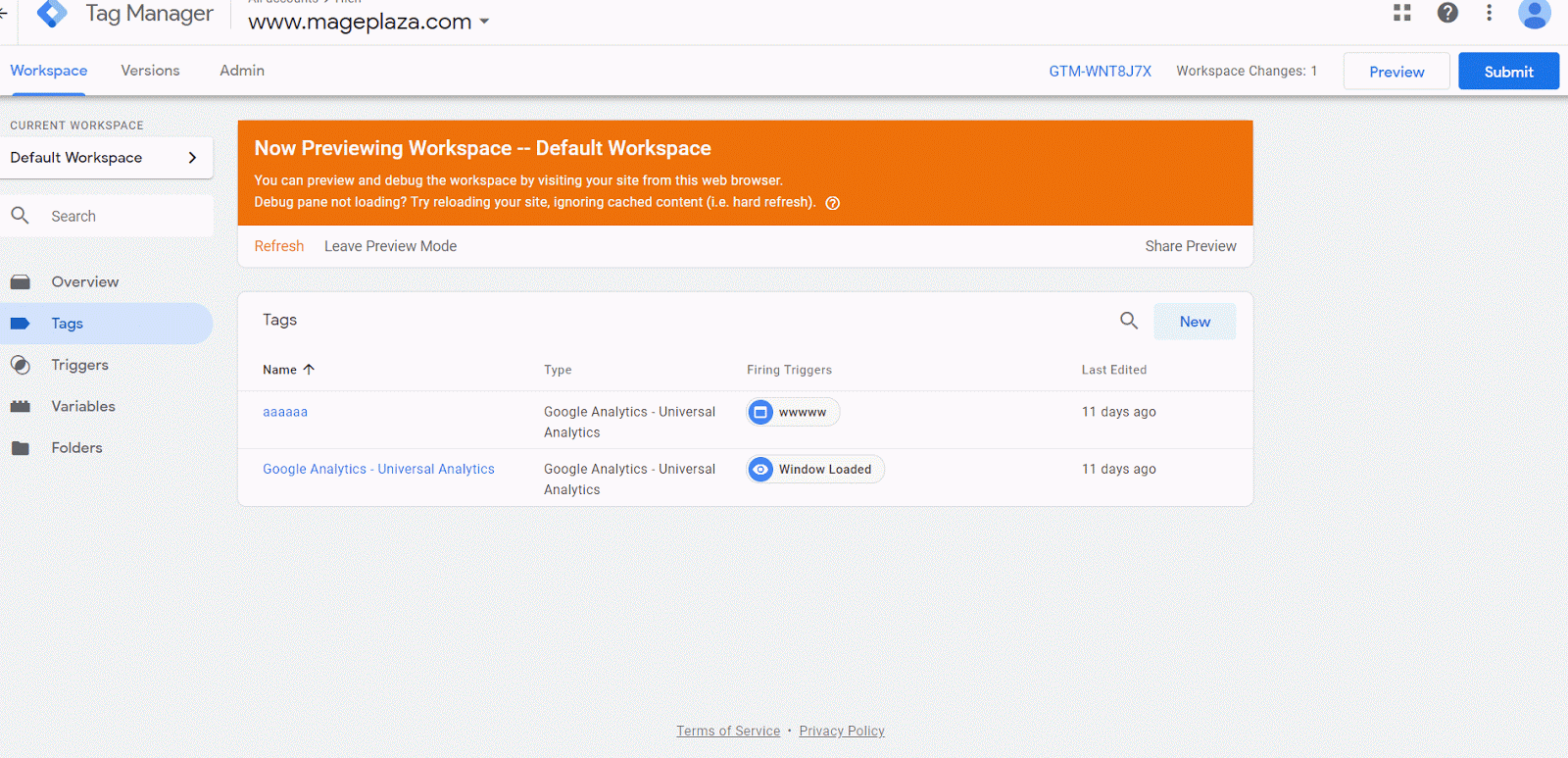 Note: To turn on Google Tag Manager, you need to create Trigger, then Tag and click Preview or Submit in case GTM is disabled.
