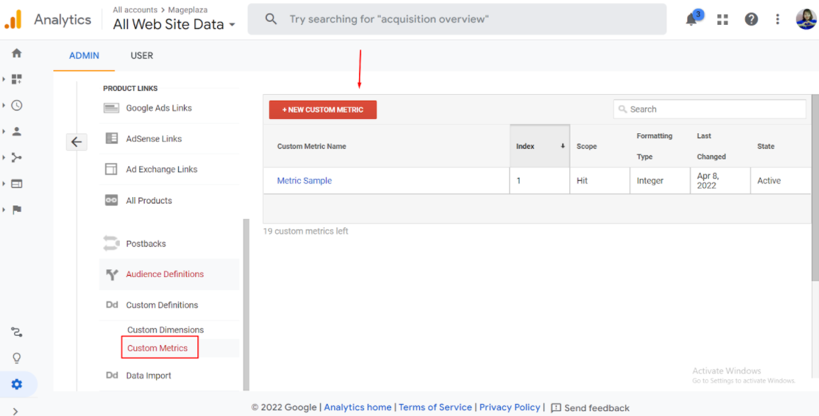 Admin > Custom Dimensions > Add New Customer Metricsor Metrics available in Google Analytics.