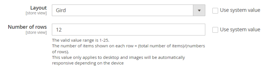 Number of rows: Insert the number of rows to determine the number of items displayed on each row. Highly recommend from 1-25 (valid numbers) for a clearer visuality on your website.
