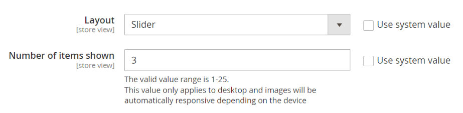 - Number of items shown: Insert the number of items to show in the slider. Highly recommend from 1 to 25 (valid numbers) for a clearer visuality on your website.