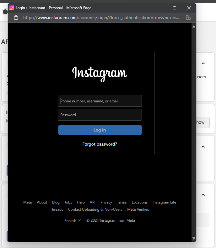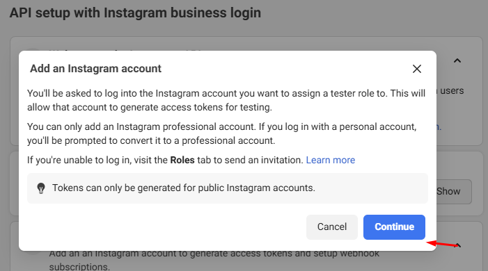 Step 11: Login to the Instagram account you want to assign a tester role to (exactly what the popup notifies at step 10)
