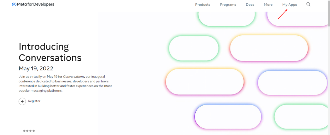 Step 2: Log in to Facebook. Click Login to sign in with the existing Facebook account, or register a new account. After logging in, choose My App from the menu at the top.