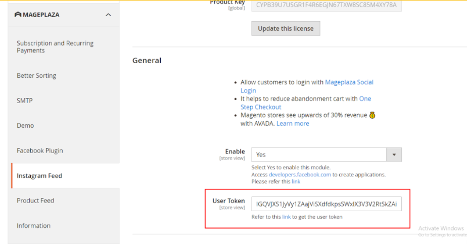 Copy that token and go to the User Token field in the Mageplaza Instagram Feed extension.