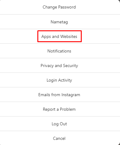 - In the next step, login to the Instagram account that you want to add and click on the cogwheel icon and choose Apps and Websites