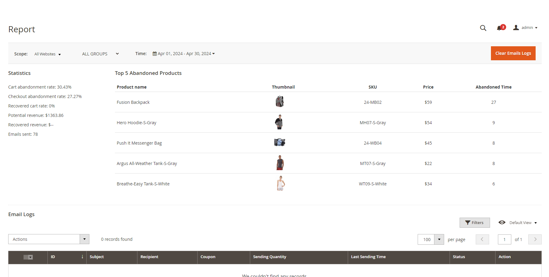 The One Step Checkout extension is fully compatible with Mageplaza's Abandoned Cart Email extension. Through the One Step Checkout page, you can access information about the shopping carts, which ones have been recovered, which ones are classified as abandoned carts, related cart reports, etc.