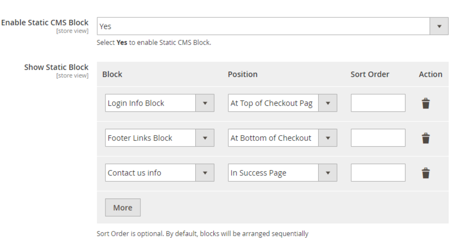 | 3 | Customizable Layouts | Add/ remove/ drag layouts on checkout page according to each storeview: Let store owners add, remove, or rearrange layouts (Address Information, Shipping Method, so on) to collect the necessary information from customers without overwhelming them. |