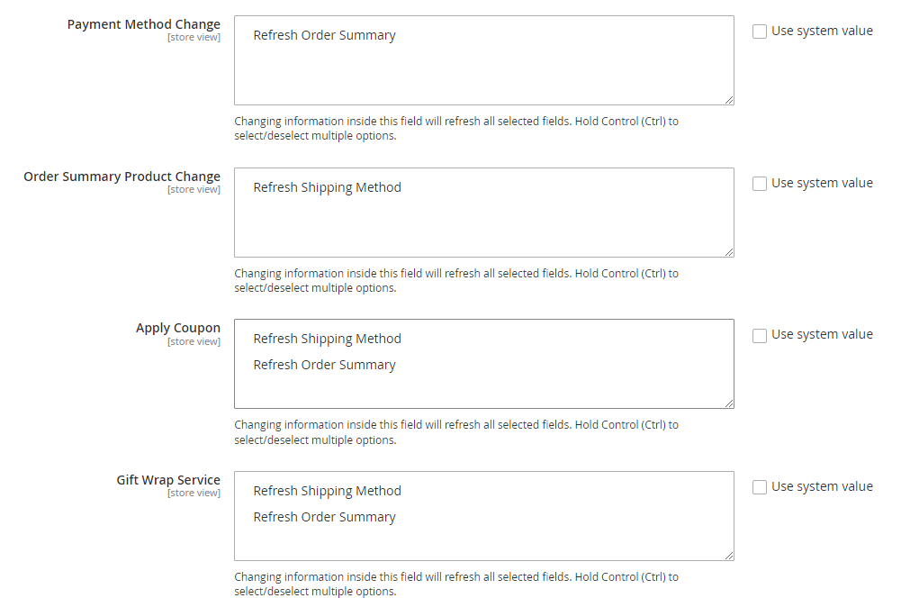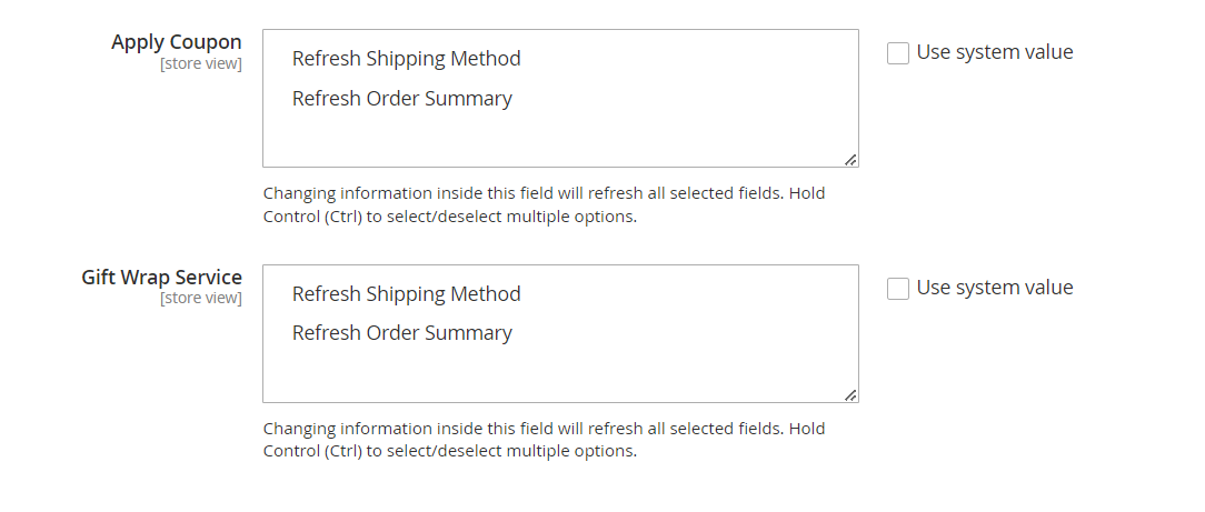 Refresh Order Summary: If the information in the Coupon Apply is changed, Order Summary will be refreshed when choosing this option.
