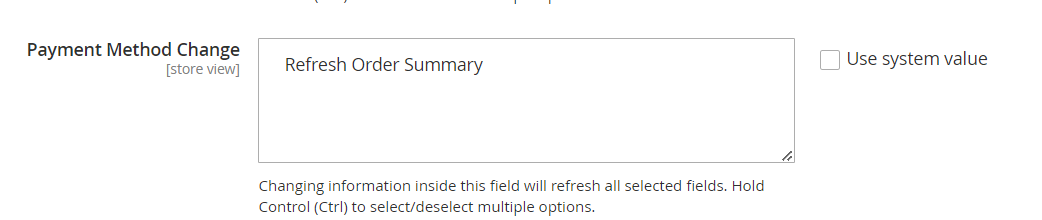 - Refresh Order Summary: If the information in the Payment Method is changed, Order Summary will be refreshed when choosing this option.