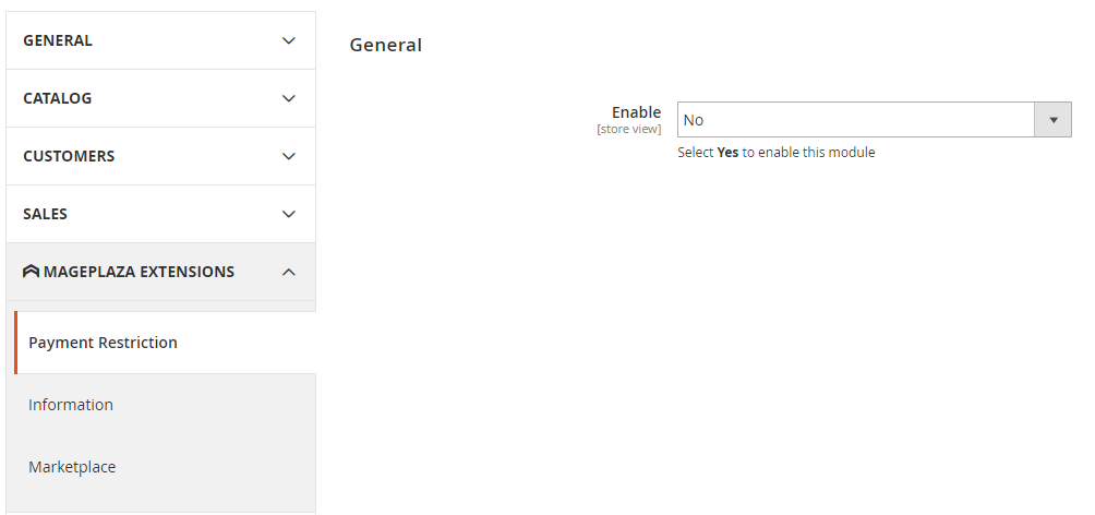 From the Admin Panel, go to Sales > Payment Restriction > Configuration, choose General Configuration section.