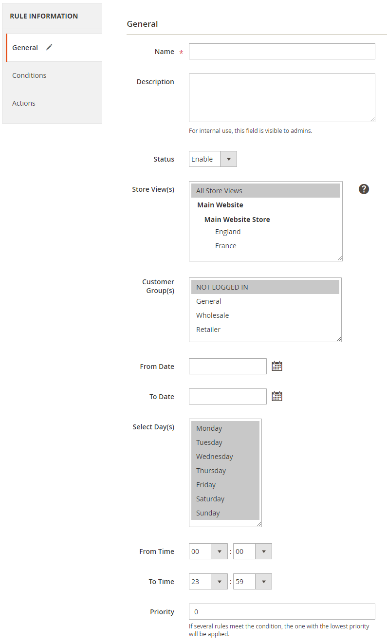 Customer Group(s): Choose one or many customer groups at the same time to use the rule. The unselected customer groups won't be applied the rule