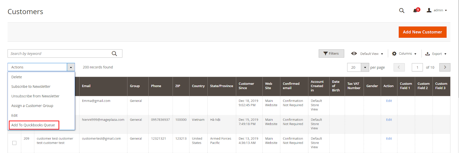 With the available data before, admin can Add To Quickbooks Queue with Customer, Product, Order, Invoice, Credit Memo to send data into Manage Queue and synchronize them.