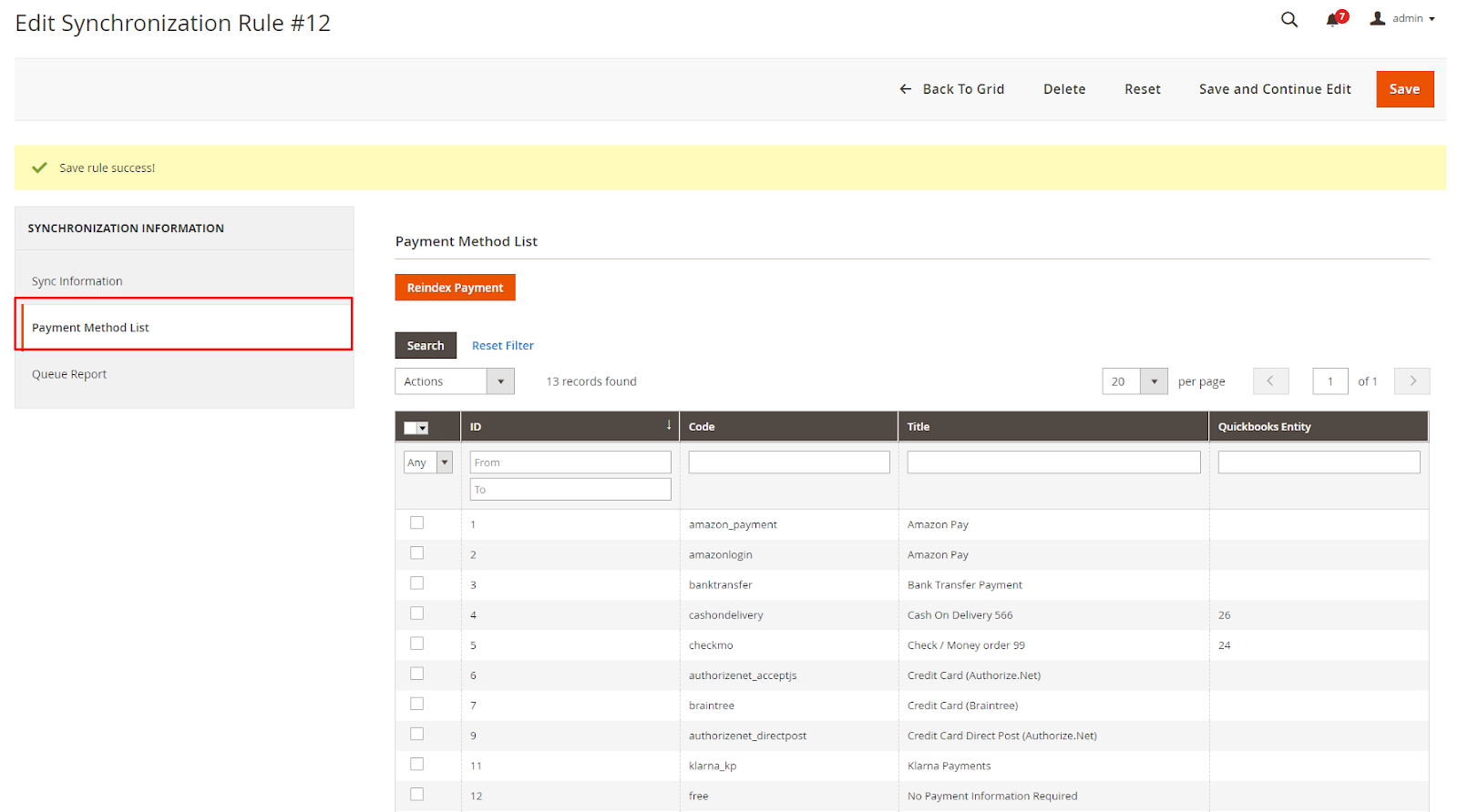 - Reindex Payment button: Click Reindex Payment button to update payment method when there is a change in title or when that payment method is not used on your website.