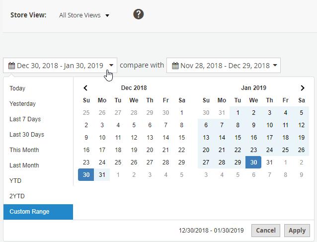 *Note: Magento 2 Reports can be used with multiple stores. Multiple stores module: