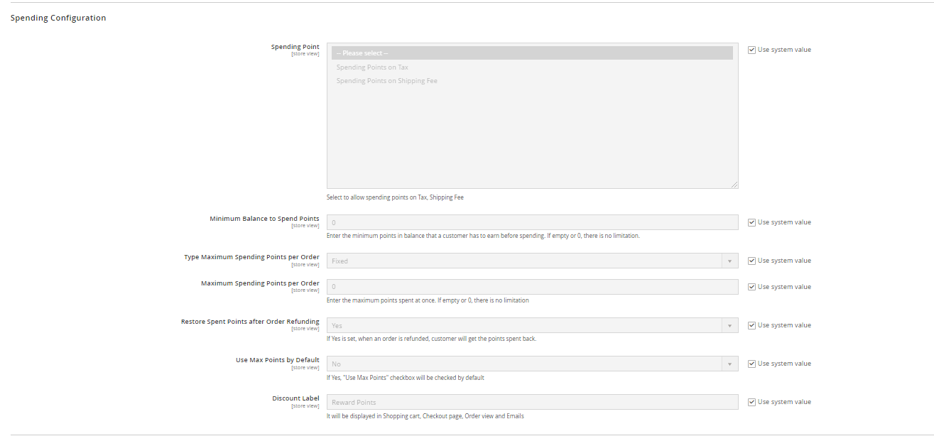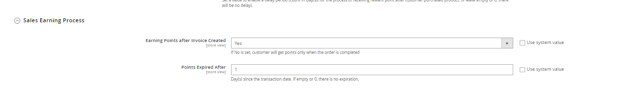 In the Restore spent points after order refunding field: When customers place an order, they can apply a certain amount of their reward point(s). Admins select “Yes” in this section to return point(s) to customers if their orders are refunded.