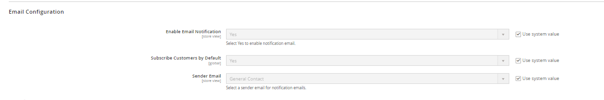 - In the Subscribe customers by default field: When a new customer subscribes to a store, receiving no emails is set as default. Select “Yes” in this section so that when their first transaction is made (by purchasing or by admin), Reward Points Notification will be checked immediately.