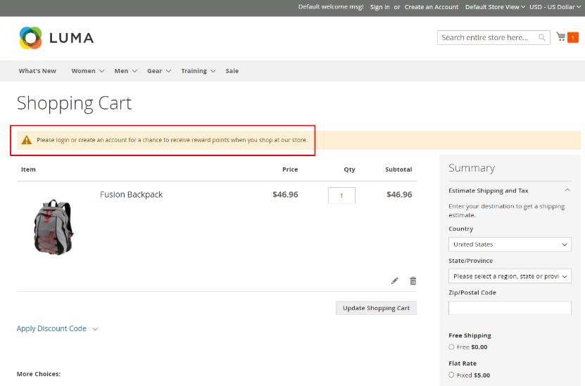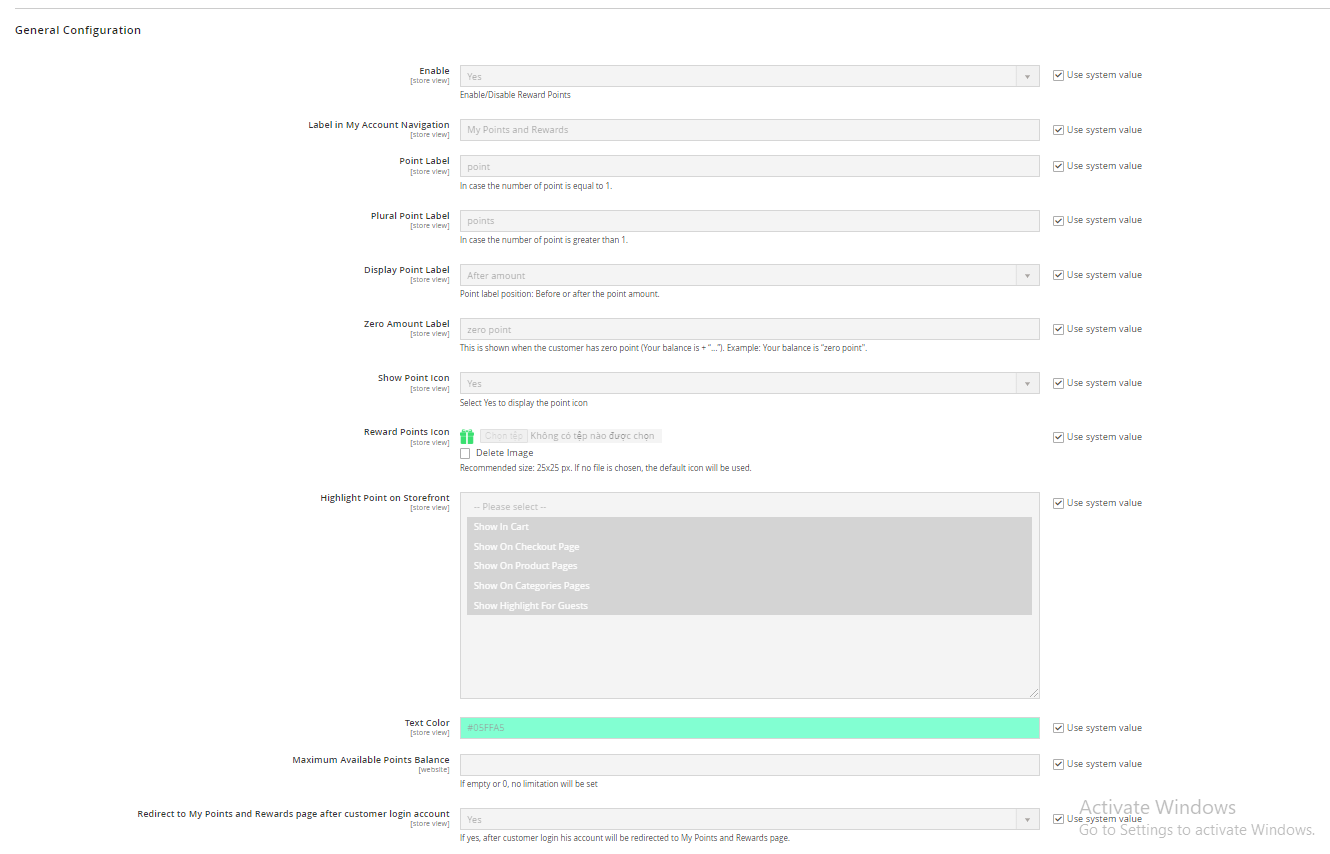 - However, Earning Point(s) can’t be shown on this page if admins disable the field Display Earning Points on Shopping Cart in the backend.