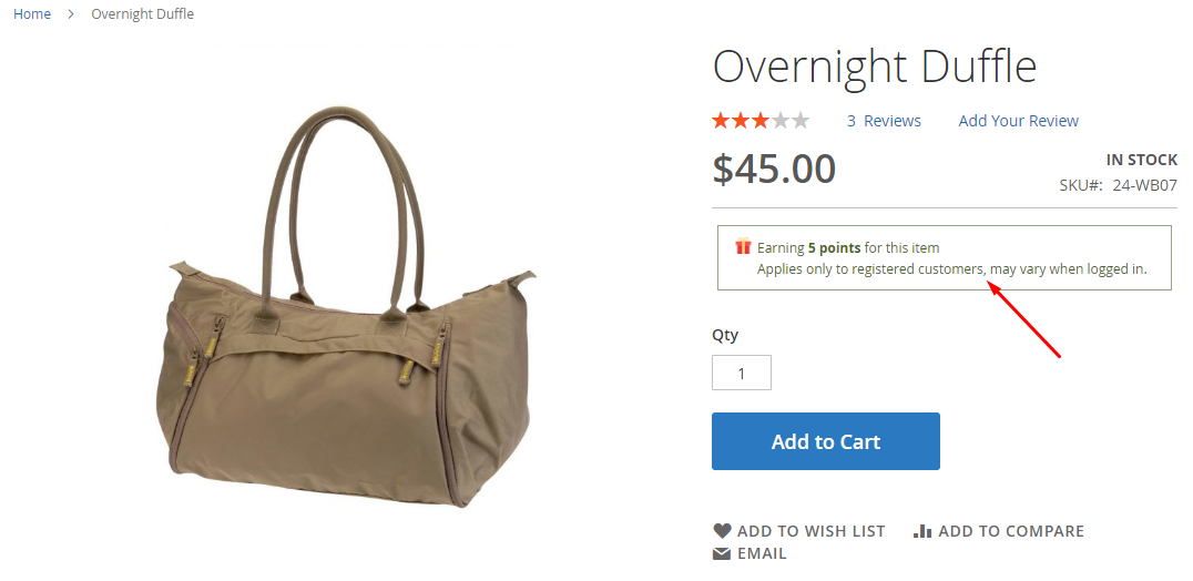 - This page also displays the earning point(s) customers will receive when they place the order.
