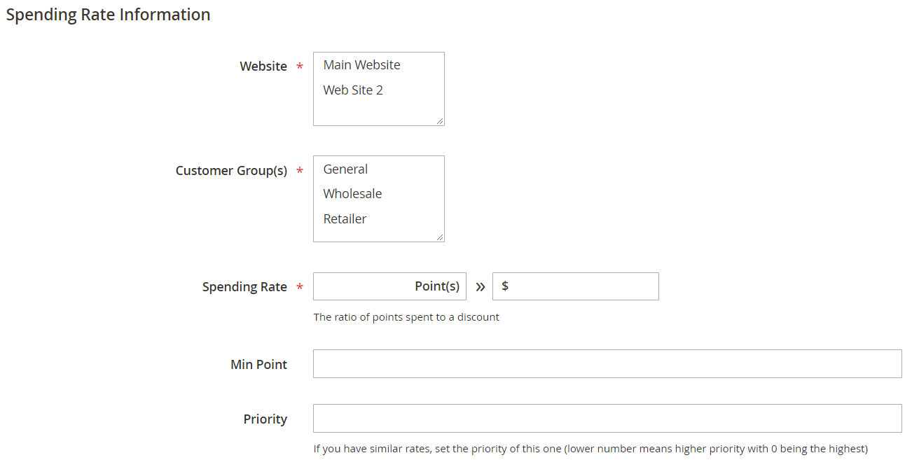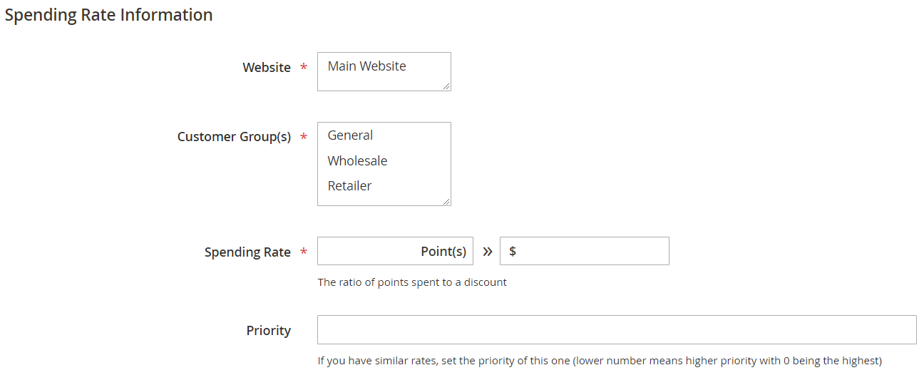 - Earning Rate and Spending Rate that customer is entitled (according to his Customer Group and Website set in the backend).