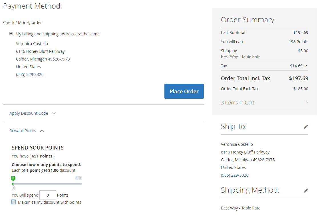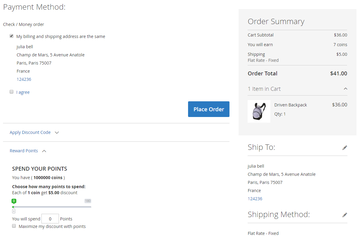 - Tick the checkbox Maximize my discount with Point to use all available points at once. The amount of points can be