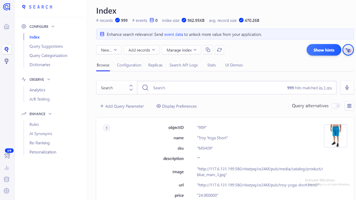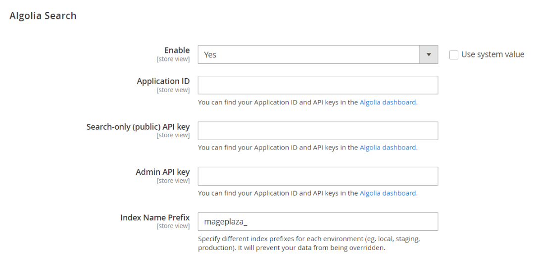 Enable: Choose Yes to synchronize the Search product to Algolia with each store view when an event occurs like Reindex Search Data( Manually), Cron job, and After Product Save.