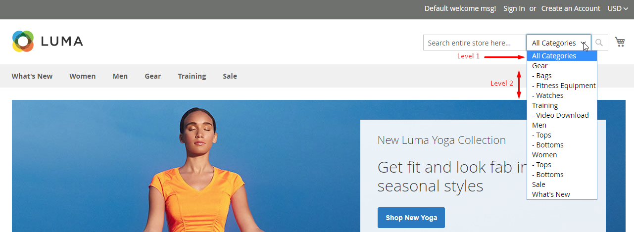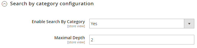 - In the Maxiamal Depth field: The entered number represents the level of displayed Category in the search box.