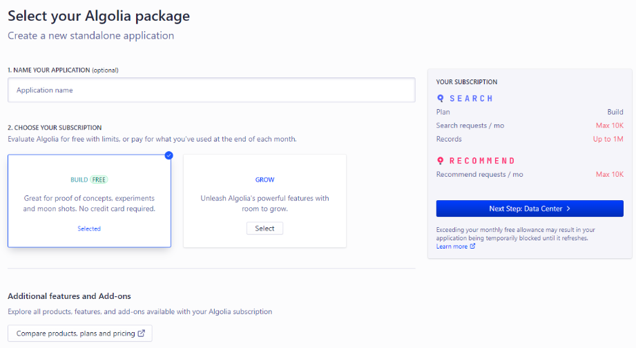 - To register an Algolia account, please visit https://dashboard.algolia.com/users/sign_in.